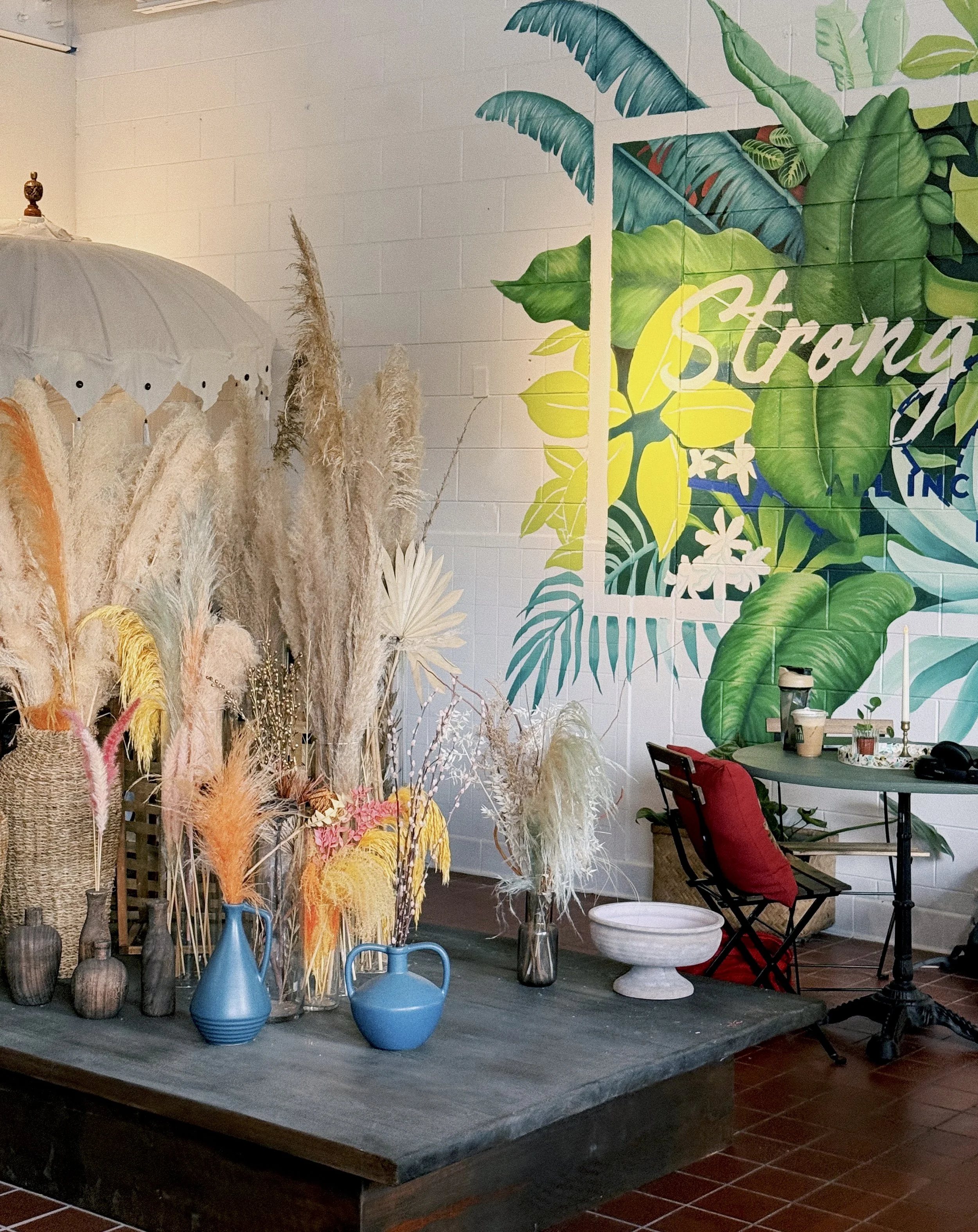 To my surprise, I stepped into an oasis—lush greenery, cozy vibes, and friends chatting over coffee! The plant shop Kiwi & Fern shares the space with Black Phin, filling the cafe with lush greenery at every turn. I realized upon entering that this was the same space where plant store “The Heavy” (rip) used to be.